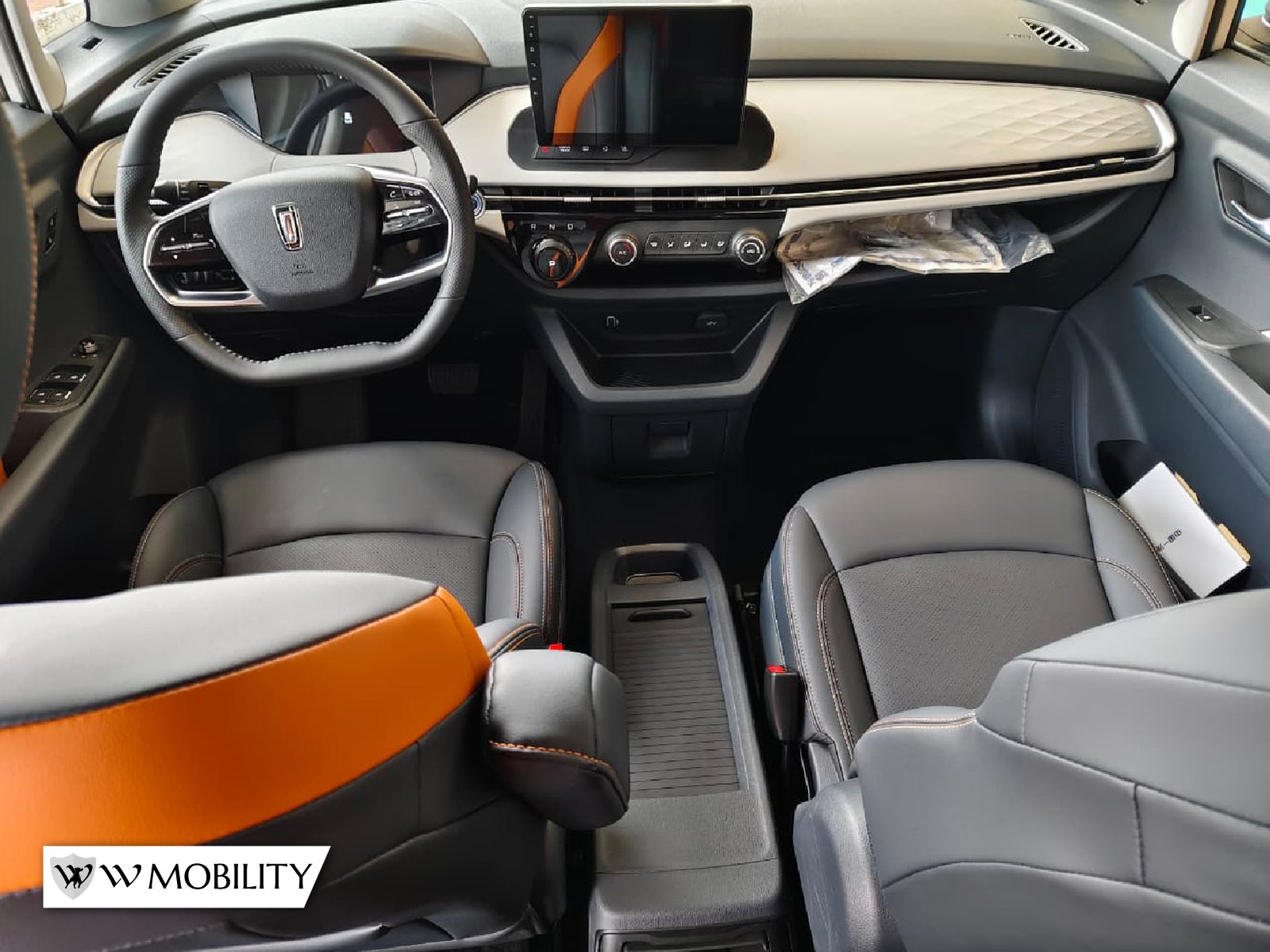 En el interior ofrece un espacio cómodo y bien distribuido para 5 pasajeros. La cabina está pensada para la practicidad y el confort, con acabados de calidad y un diseño funcional que aprovecha cada rincón para hacer más agradable la experiencia de viaje.